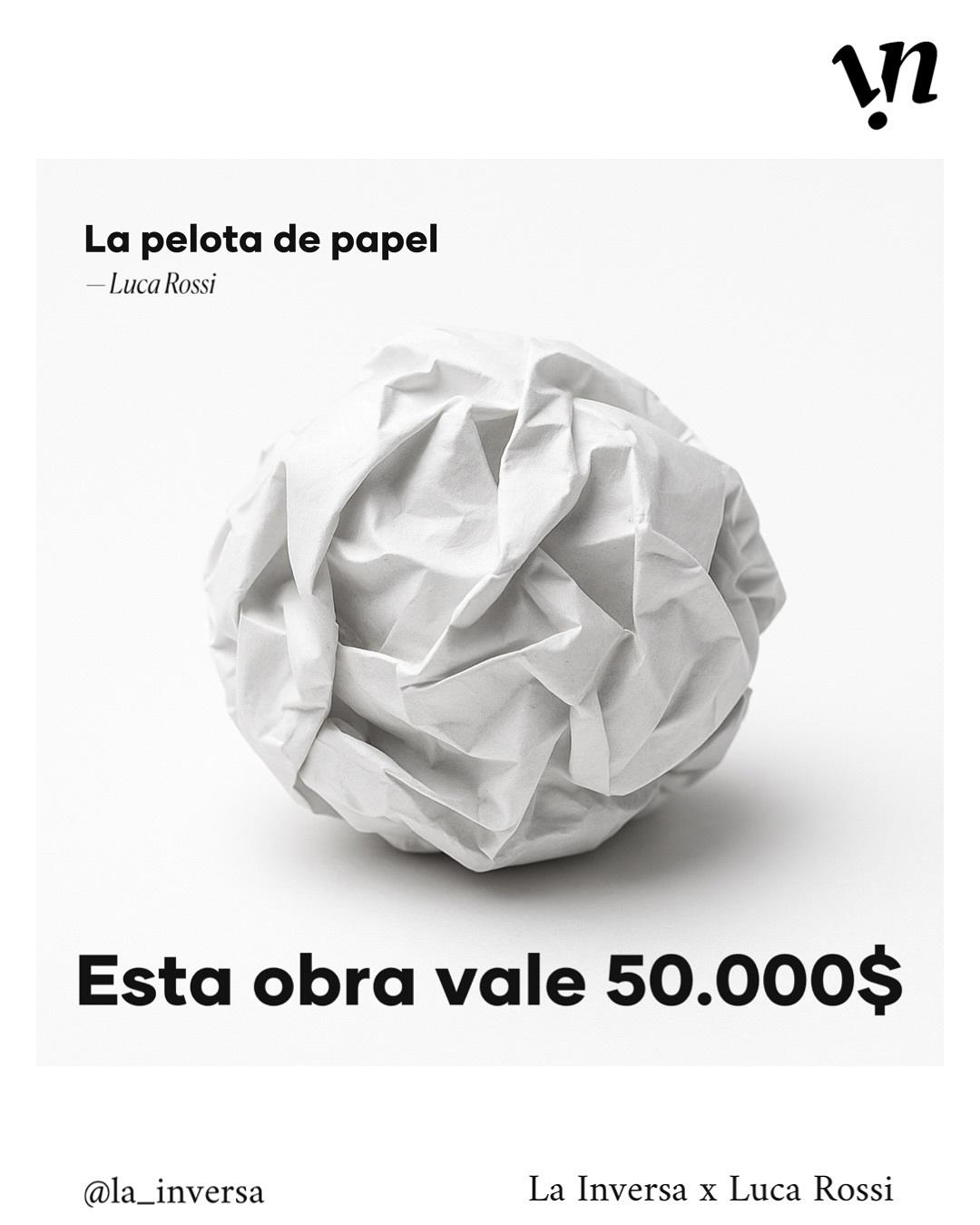 En 2009 nace Luca Rossi, una identidad múltiple y anónima concebida como un dispositivo crítico para revelar las grietas del sistema del arte contemporáneo. Entre sus acciones más emblemáticas, la pelota de papel se convierte en una metáfora demoledora: un objeto sin valor que, al entrar en la galería, circular por la feria y ser subastado, se transforma en mercancía.