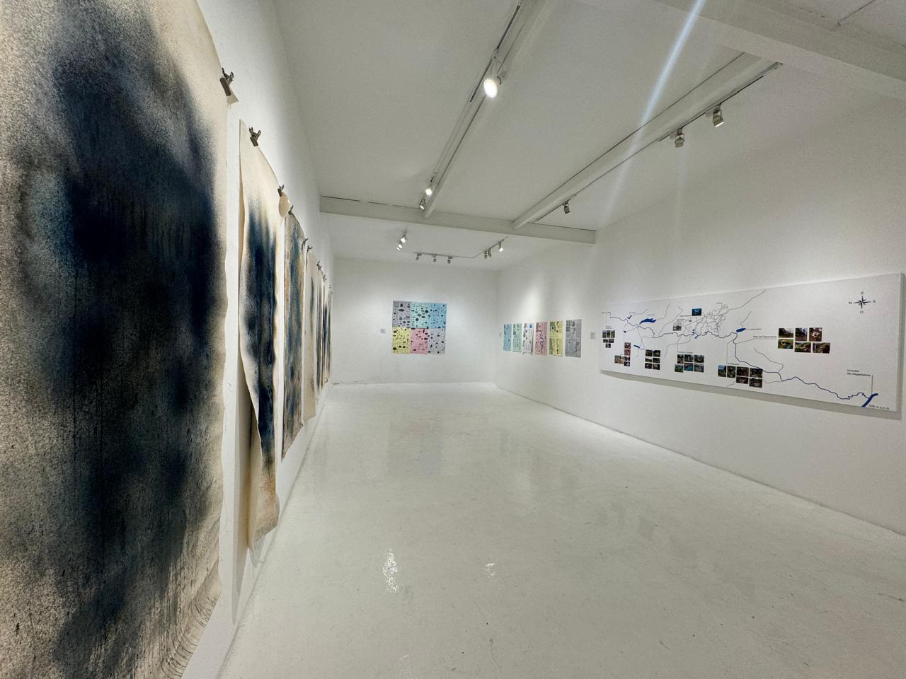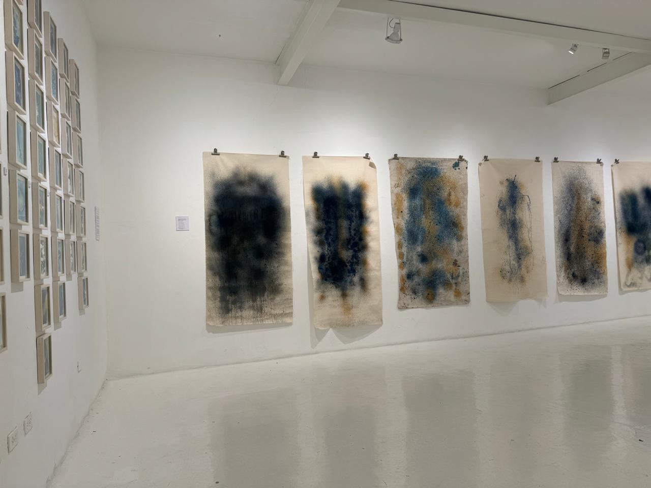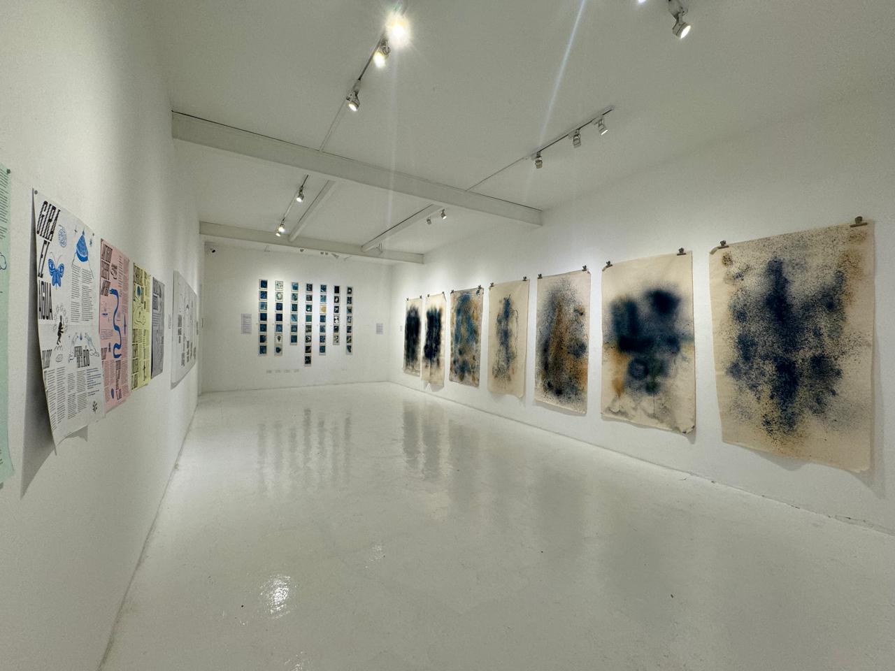 La muestra expone por primera vez aguaauragrafías en tela y en papel en los que el río Bogotá se revela vivo e inspirador. Las obras fueron creadas durante un ciclo de talleres y procesos colaborativos en 2023 que conectaron arte, ciencia y comunidad, al poner en diálogo la medición de calidad del río y la creación de imágenes con sus aguas.