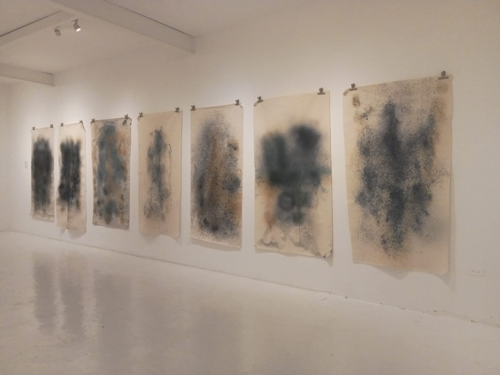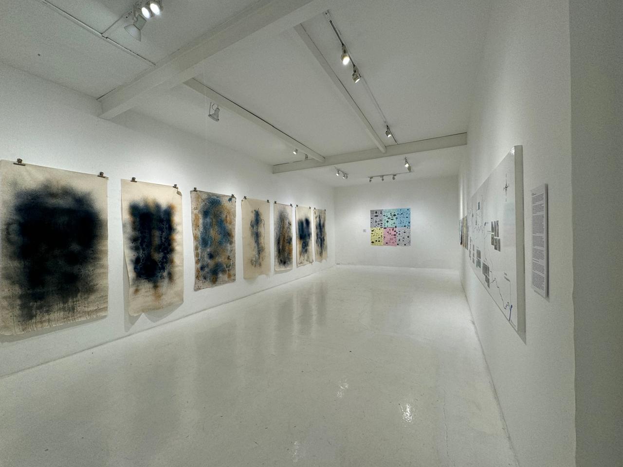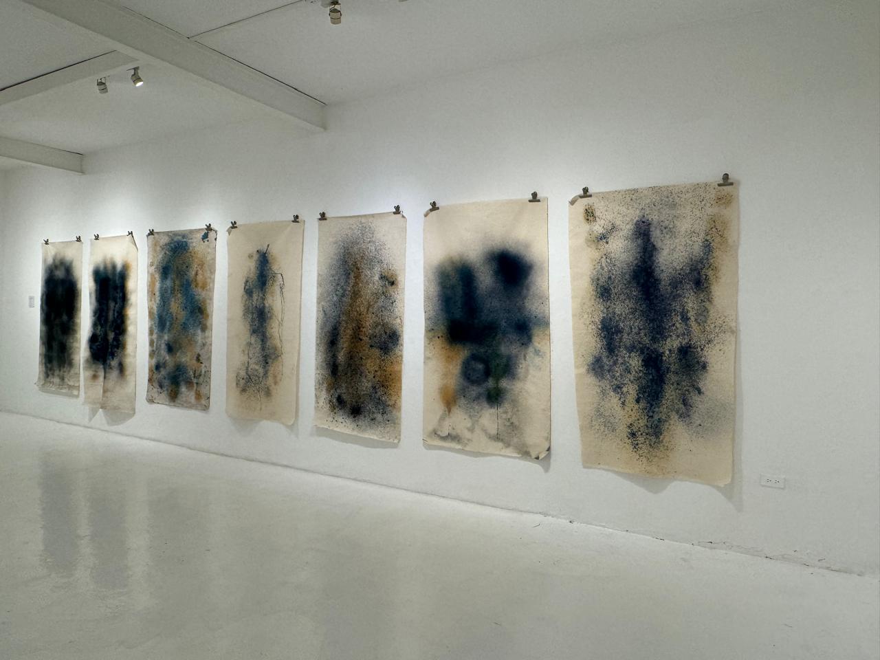 La muestra expone por primera vez aguaauragrafías en tela y en papel en los que el río Bogotá se revela vivo e inspirador. Las obras fueron creadas durante un ciclo de talleres y procesos colaborativos en 2023 que conectaron arte, ciencia y comunidad, al poner en diálogo la medición de calidad del río y la creación de imágenes con sus aguas.