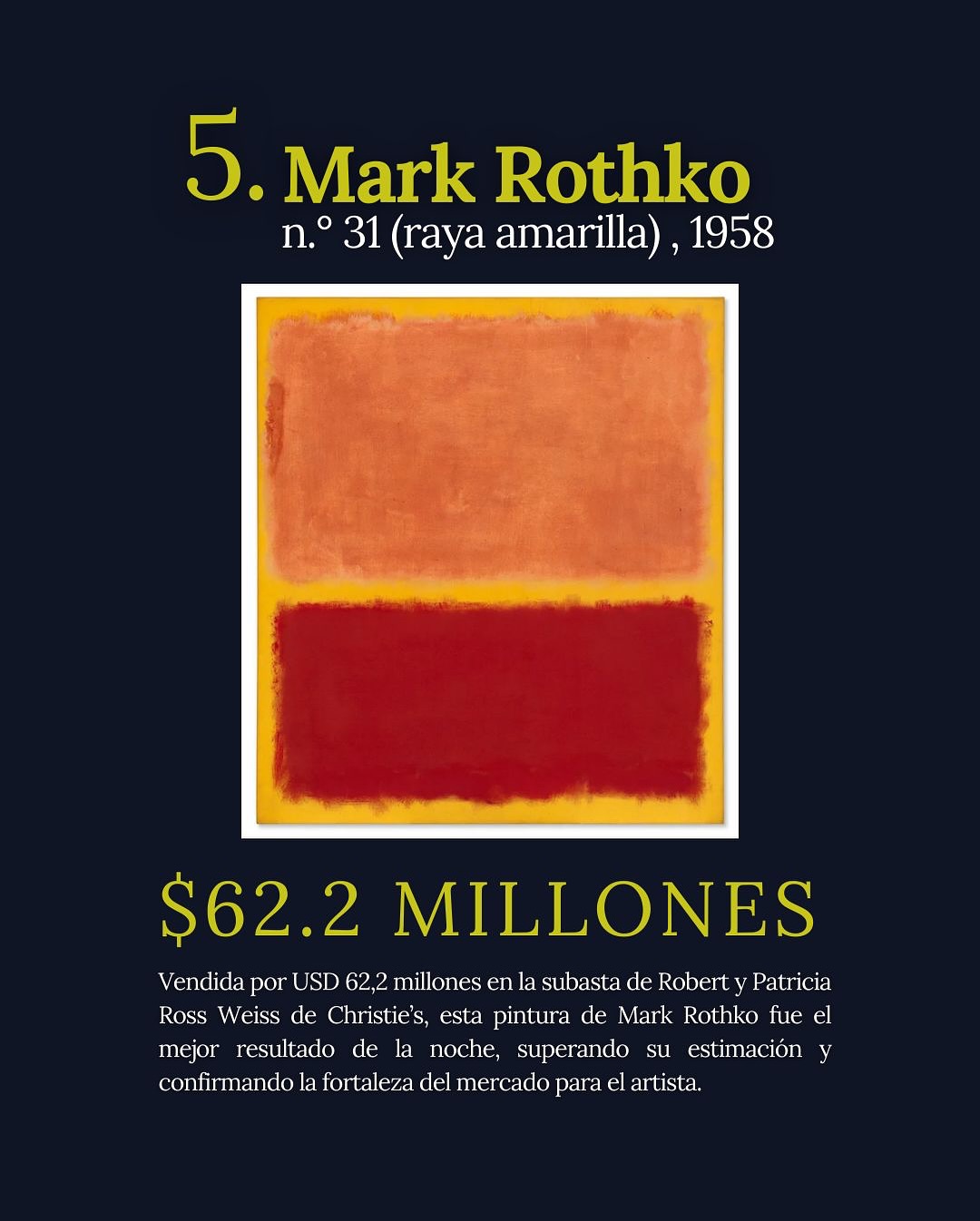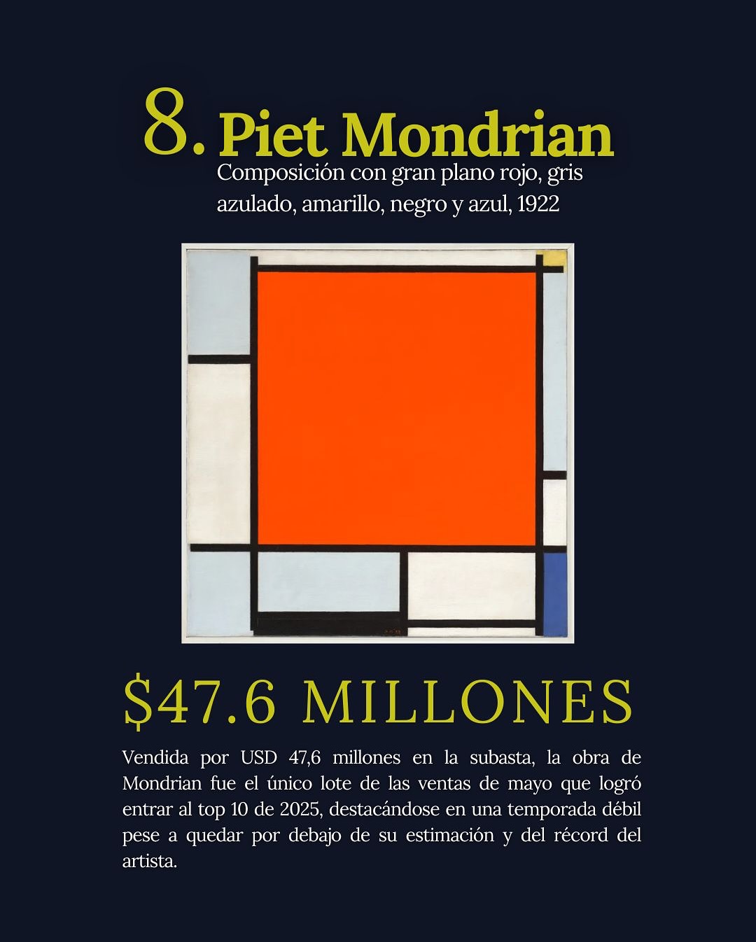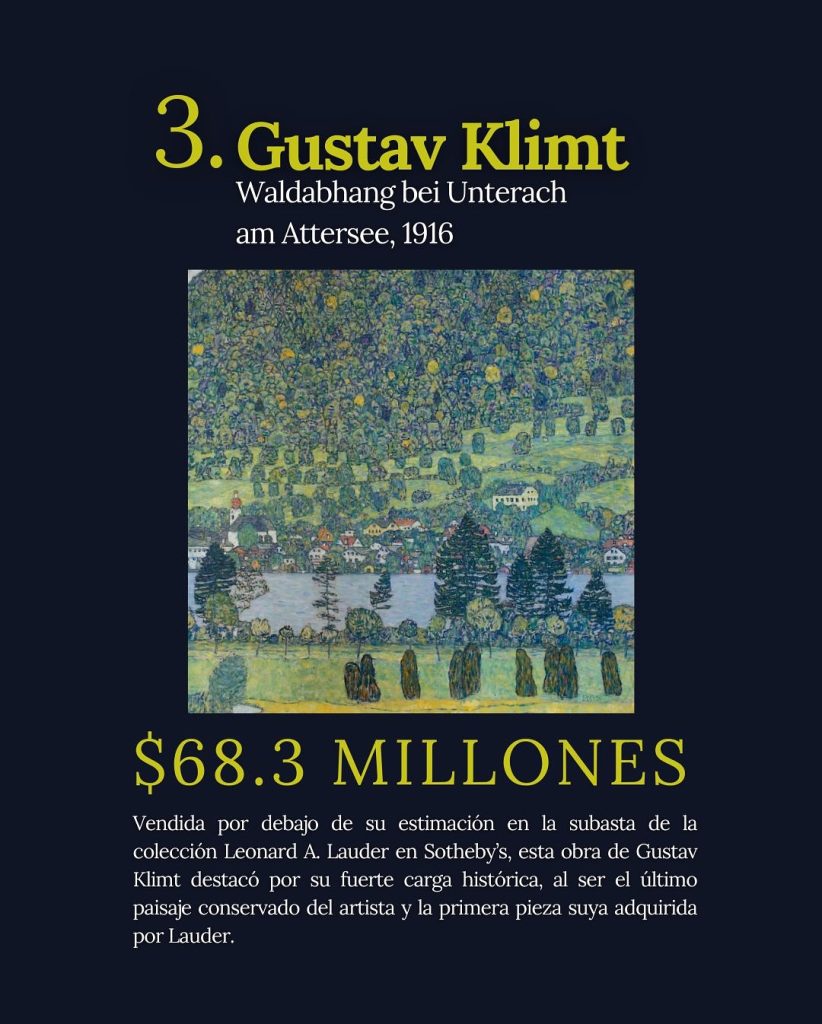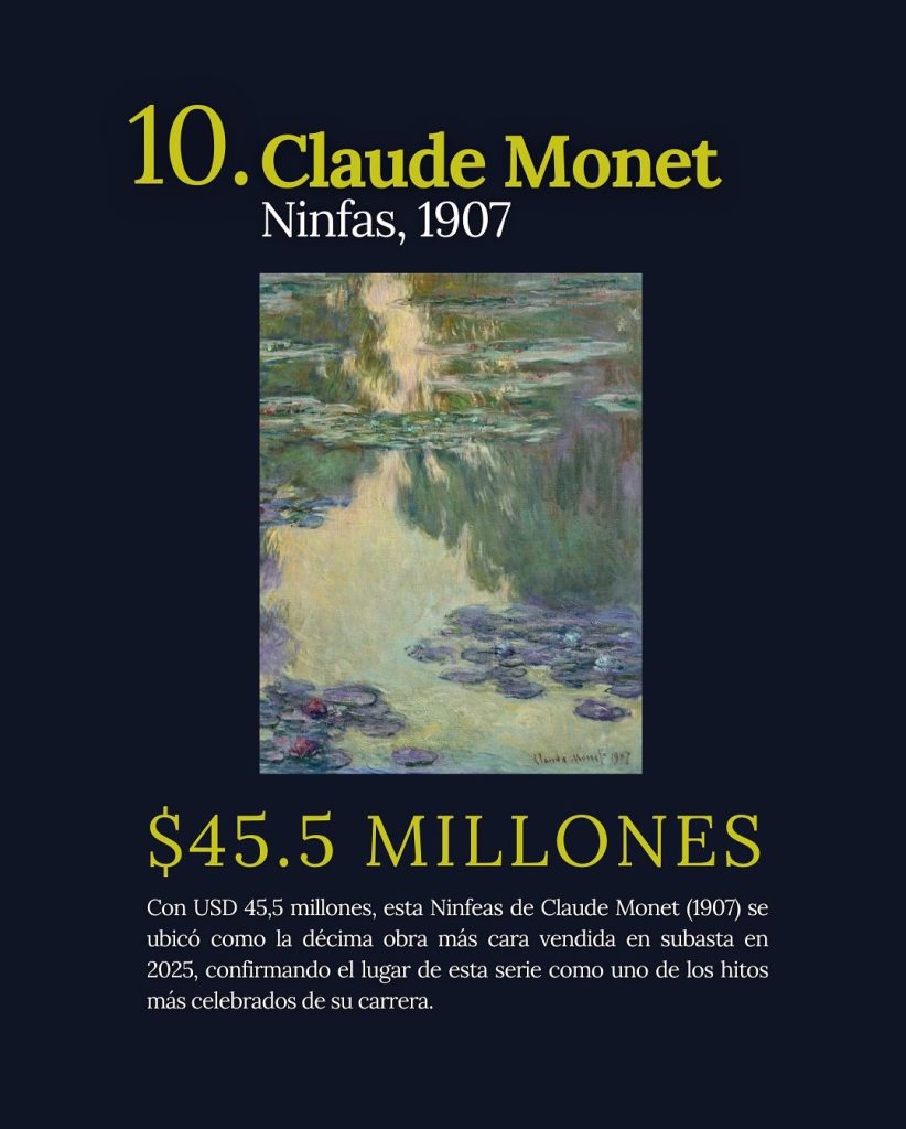 Los resultados de las subastas en 2025 revelan un mercado más sólido de lo que muchos anticipaban. Solo las diez ventas más altas del año sumaron USD 757 millones, una cifra que no se veía desde 2022 y que supera ampliamente los totales alcanzados en 2023 y 2024.