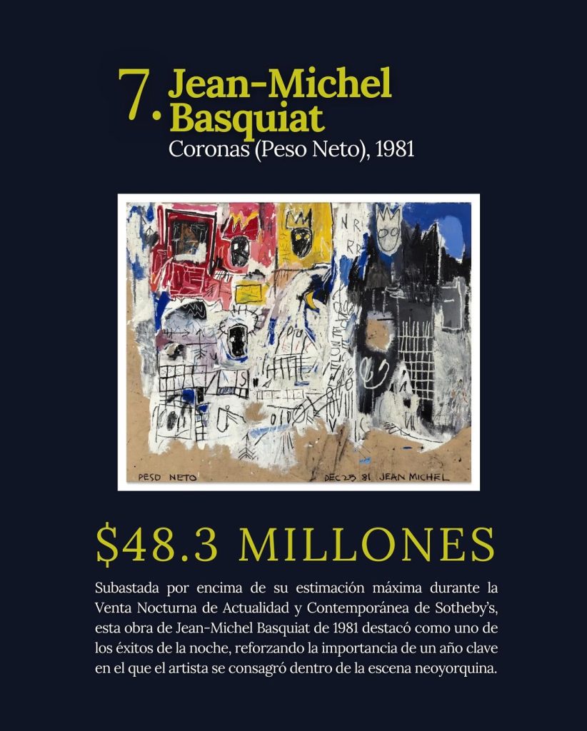 Con la temporada de ferias llegando a su fin y el calendario encaminándose hacia 2026, este ranking ofrece una lectura clara de las obras, artistas y momentos que definieron el pulso del mercado en subasta durante el año.